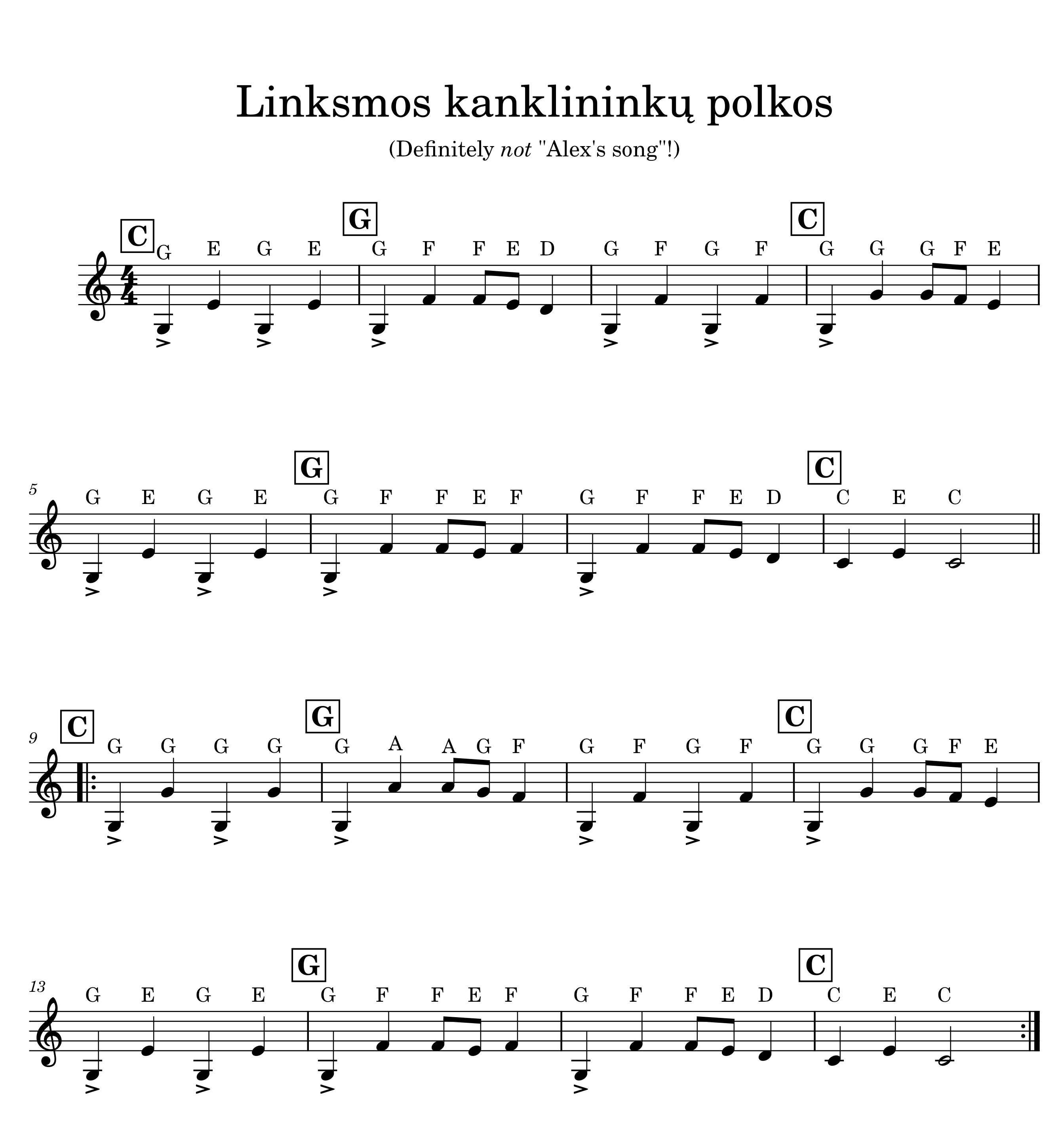 📄 pdf Linksmos kanklininkų polkos C Major • For kanklės type: small Chords Used 9-String 10-String C major G 5 C D 4 E F 3 G A 2 B♭ 1 C 9-string C major G A 5 C D 4 E F 3 G A 2 B♭ 1 C 10-string G major (low) G C 4 D E 3 F G 2 A B♭ 1 C 9-string G major (low) G A 5 C 4 D E 3 F G 2 A B♭ 1 C 10-string « Lineli raunu ne viena | All songs | Polka Medley »